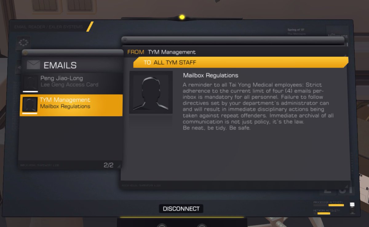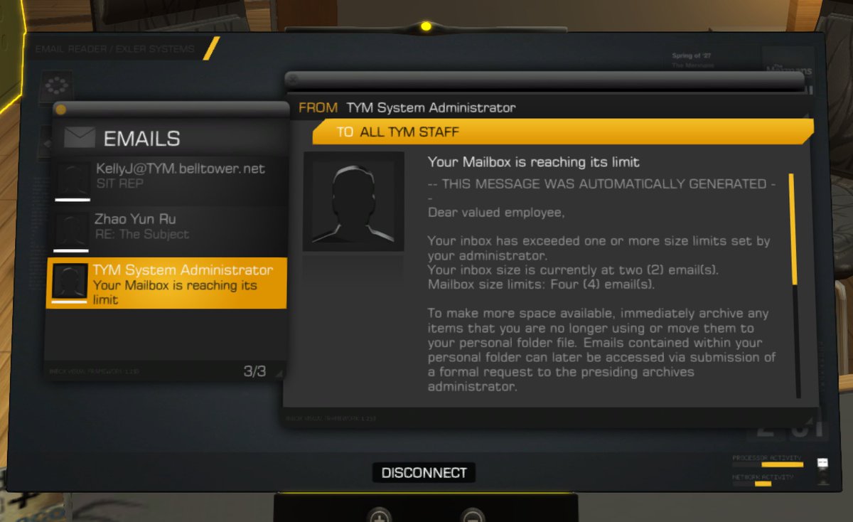 There aren't a ton of jokes in Deus Ex: Human Revolution, but I like how they explain how few emails there are on the computers