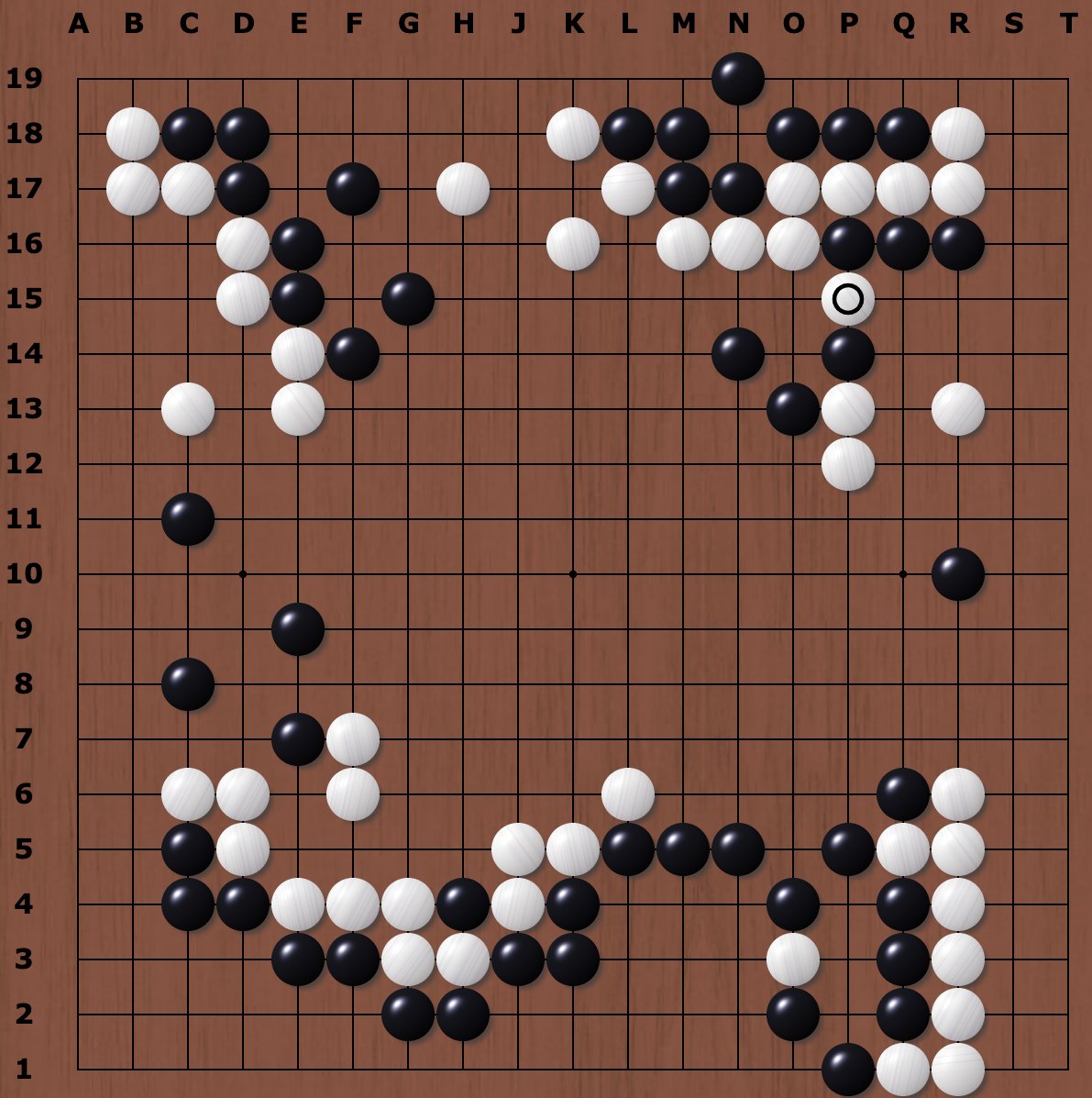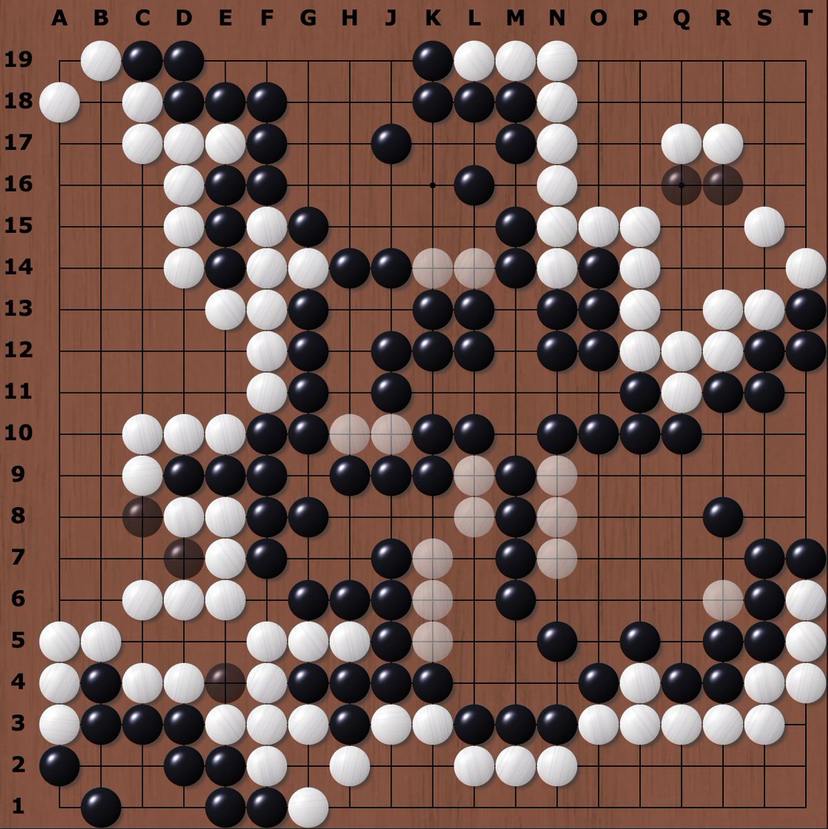 W takes big side and corner territory, but B wins a crucial fight for the center. B+4.5 #weiqi #baduk